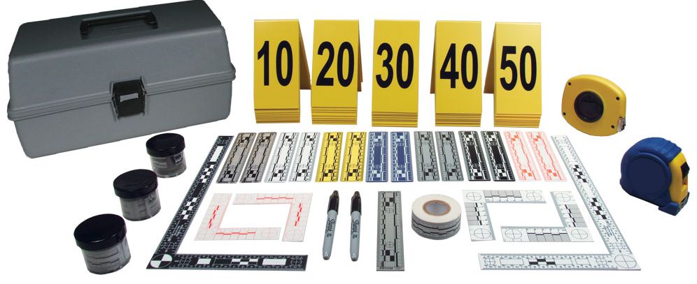 Similar to the Photo Documentation Kit provided above, this kit is designed to assist the photographic documentation needs at a larger crime scene. All items neatly contained in a plastic field case.
